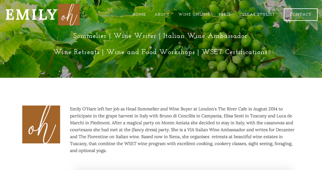 Created Emily’s first stand-alone business website to offer her various services in the wine industry. Presented a full business concept overview including how to market her offerings in various ways including retreats, education events, and online classes. Set up her branding package and a full-spectrum consistency report to solidify a solid brand recognizability over all online platforms.